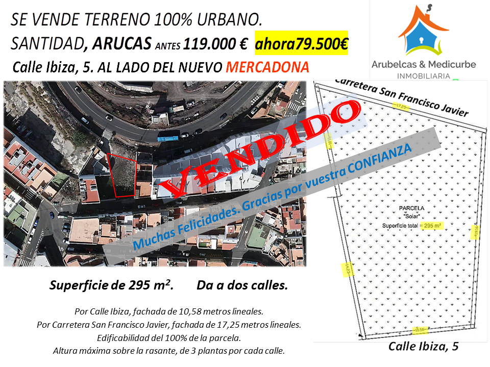 SE VENDE TERRENO 100% URBANO, SANTIDAD, ARUCAS